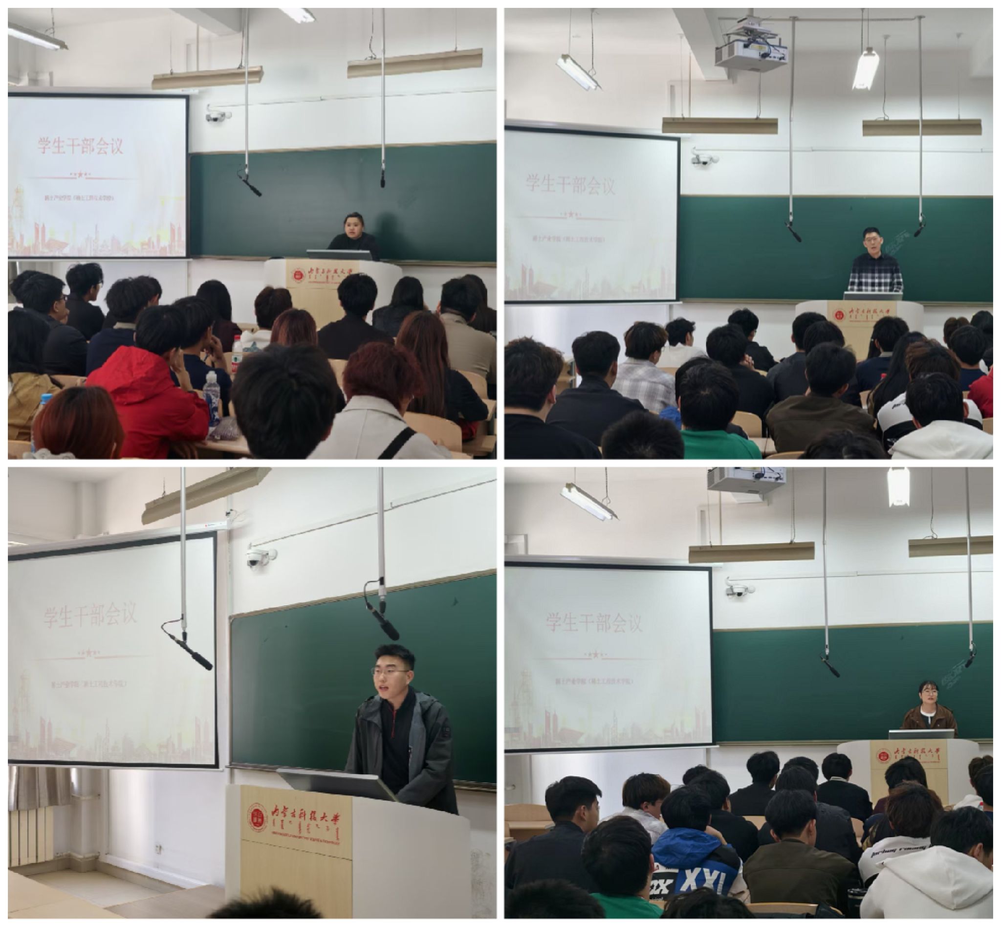 会议伊始,辅导员分别致辞,就学风建设、心理健康、宿舍管理、团支部建设、爱校荣校等各方面与学生干部进行沟通交流。